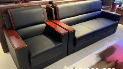 办公沙发、浅胡桃色扶手,仿皮材质